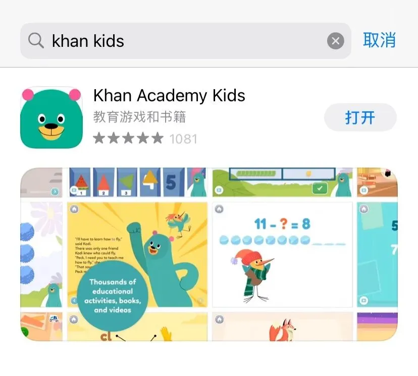 首先推荐这款是选妈家自用多年的Khan Kids,Khan Kids是可汗学院开发的针对2-5岁孩子的产品。