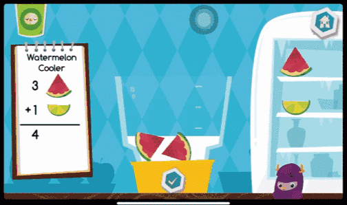 比如在Juice Store中,小朋友们需要用不同数量的水果来制作榨汁,在这个过程中,小朋友们可以了解数量和数字的一一对应,同时了解了简单加法。在榨好汁之后,小朋友们还可以选自己喜欢的杯子来“喝”果汁。
