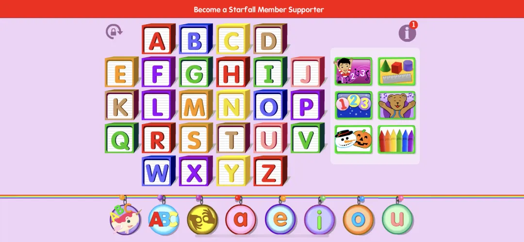Starfall也非常有名,是学习自然拼读时必玩App。帮助零基础孩子学习26个字母和跟字母有关的发音规则,在学习了字母发音及拼读规则之后,还有一些小游戏帮孩子们巩固知识。