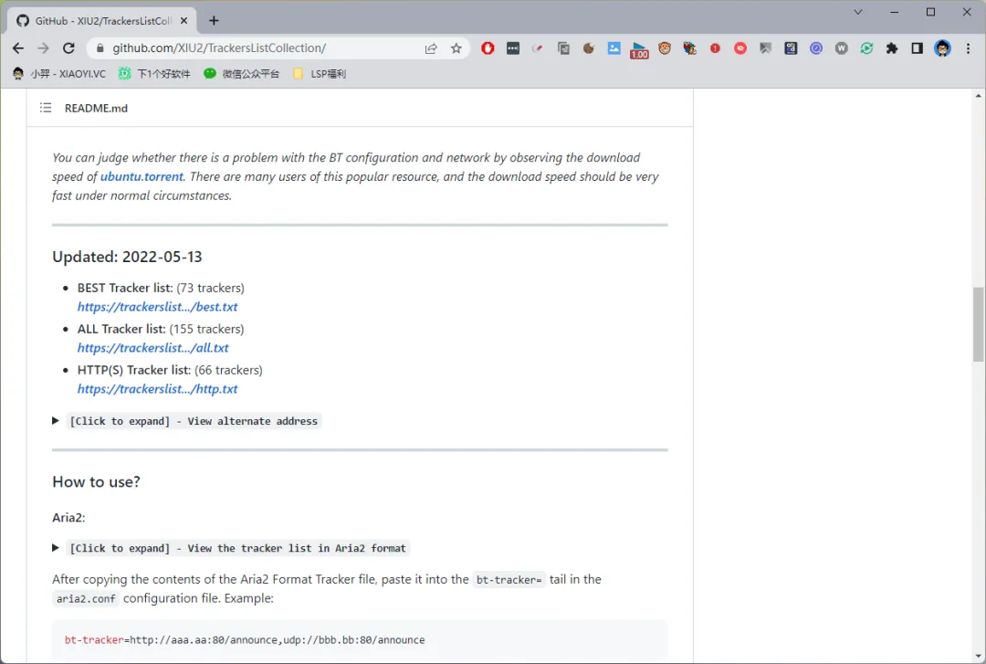 目前在 Github 上有大佬整合了全网热门 Tracker,经过筛选过滤,最终得到了一个优质的 Tracker 列表方便大家使用,并且保持更新。
