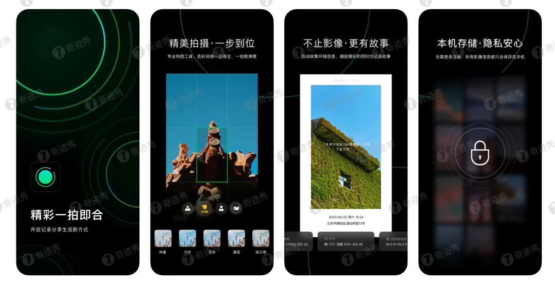 另外,秒简相机可以根据用户拍摄时的时间、地点、天气等环境信息,来为影像增添故事感,有那么一点莱卡的意思。