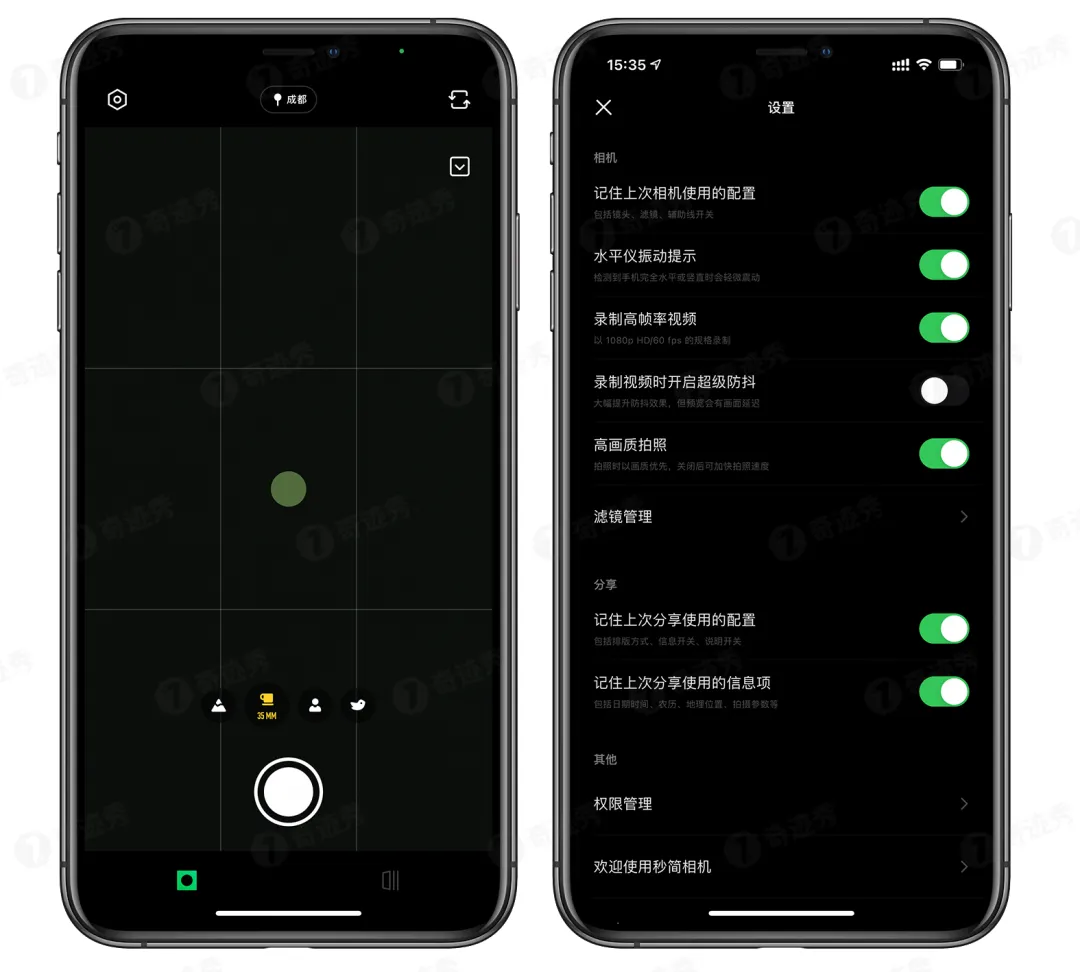 秒简相机提供滤镜、焦距预设、专业构图工具、高画质拍照、HDR、高清高帧率录像、超级防抖等功能。