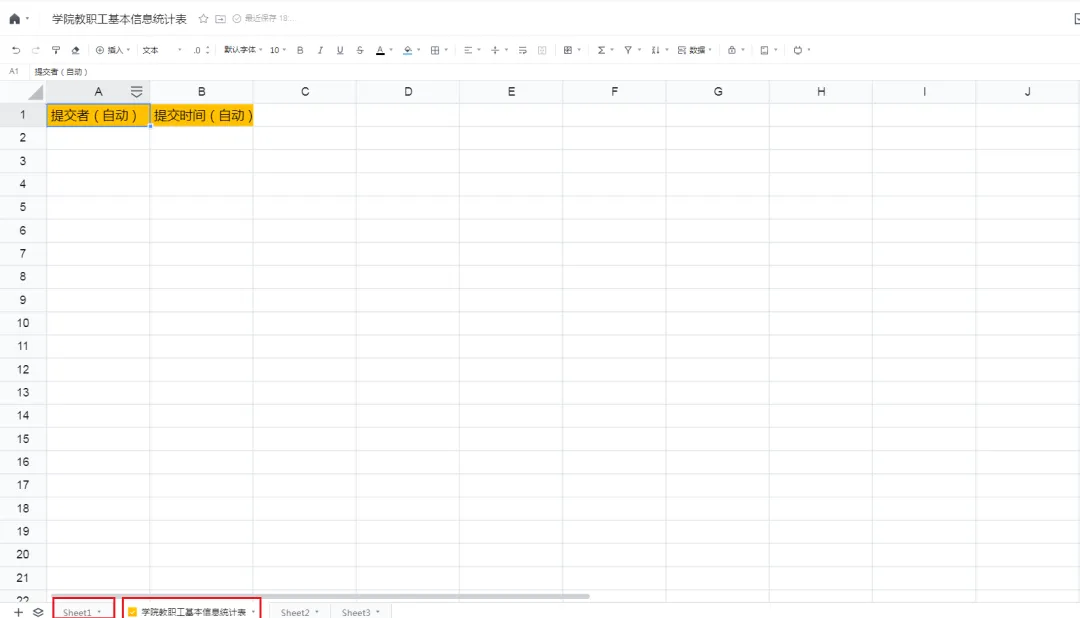 Sheet1属于原始表格,学院教职工基本信息统计表属于收集信息表