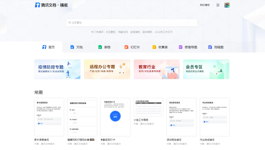 腾讯文档模板页面
