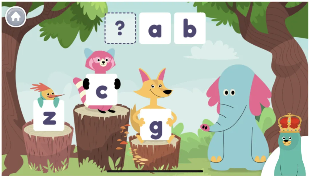 进入APP之后,第一种主要的学习模式就是孩子跟着几个动物主人公进行主题式的学习。每个主题大概8分钟左右就可以完成,期间不断地变化形式来穿插不同的内容和游戏方式,让孩子们不会觉得枯燥。