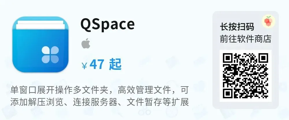 同类产品 Path Finder,订阅一年就要支付约 190 元,而今天的 QSpace 买断只要 47 元起,爆款产品数码荔枝独家代理。点击文末[阅读原文]或扫描二维码,抢购就趁现在!新用户还能领券再省 5 元!