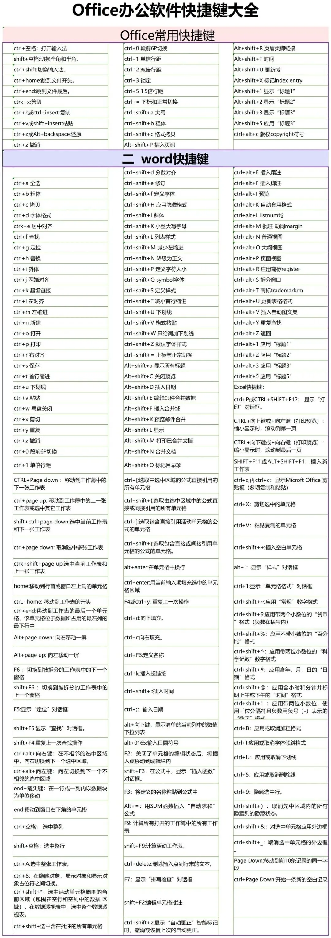 办公必备!Office (Word/Excel/PPT)+Windows+Mac 全套快捷键汇总