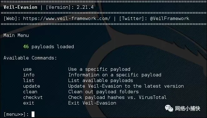 Veil-Evasion是一套渗透测试工具的一部分,这些工具统称为面纱框架。该框架的主题是隐身,是Chris Truncer(@ChrisTruncer),Will Schroeder(@ harmj0y)和Mike Wright(@TheMightyShiv)的共同努力虽然Veil中的所有工具都很棒且应该进行探索,但Veil-Evasion是框架中的面包和黄油程序,并专注于生成/ v-evading可执行文件。在Kali 2.0中,您可以通过Kali存储库或通过git克隆安装Veil-Evasion: