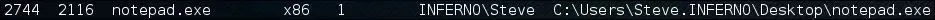 成功!我们收到了反向shell,您可以看到我们当前的进程实际上与我们的记事本可执行文件绑定(通过在Meterpreter中运行getpid和 ps命令进行验证)。
