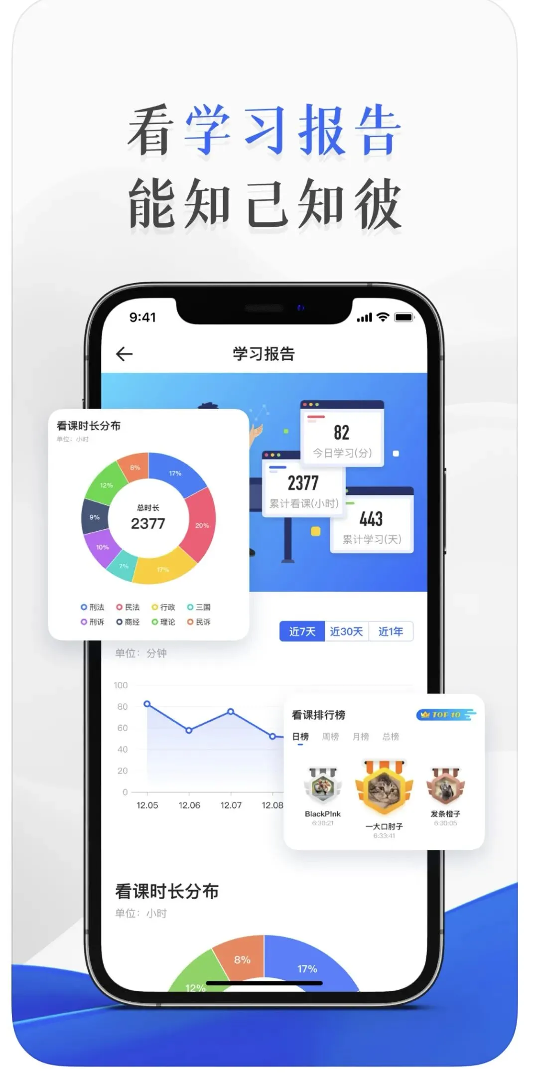听课时间、听课天数、听课排名!让数据帮助你分析学习成果,不甘为人后!