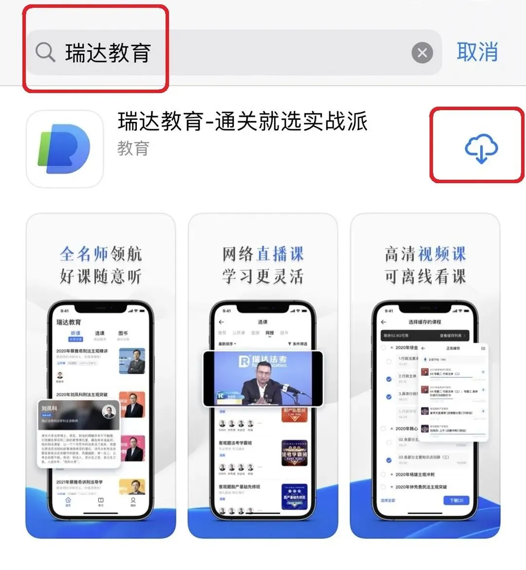 速速到应用商店搜索“瑞达教育”!