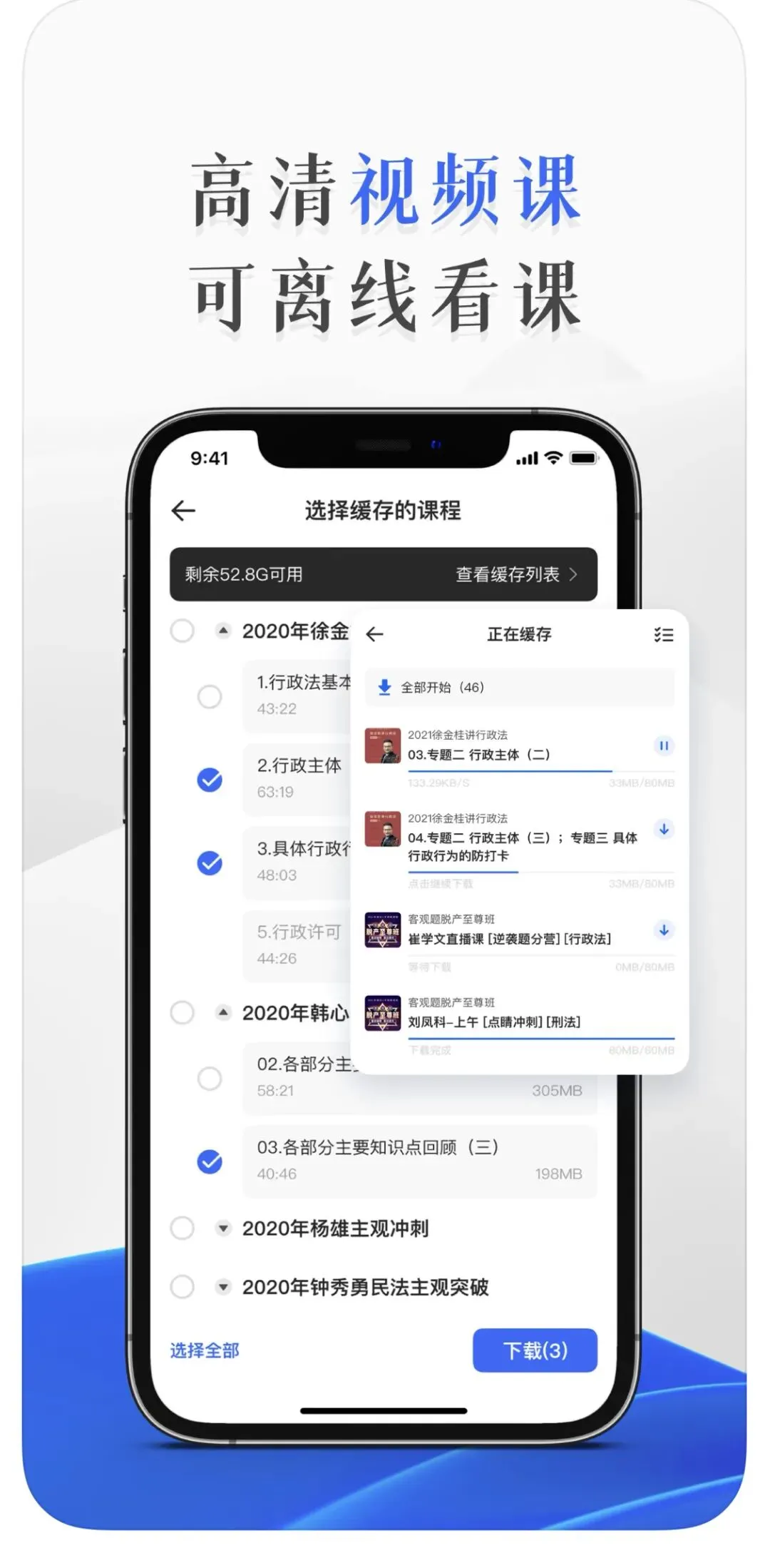 课程下载到手机里随时随地听课,不让蜂窝网络流量限制你的学习。