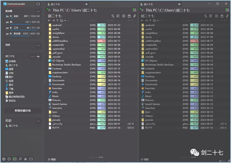 One Commander 3 是一款 Windows 下的文件管理器工具,支持多栏、多主题、多套图标、文件预览、色彩标签、彩色新旧文件识别等功能,高自定义,家庭用户可免费使用。在志愿者(如 @Krysl)的努力下,目前 One Commander 3 已内置简体中文。