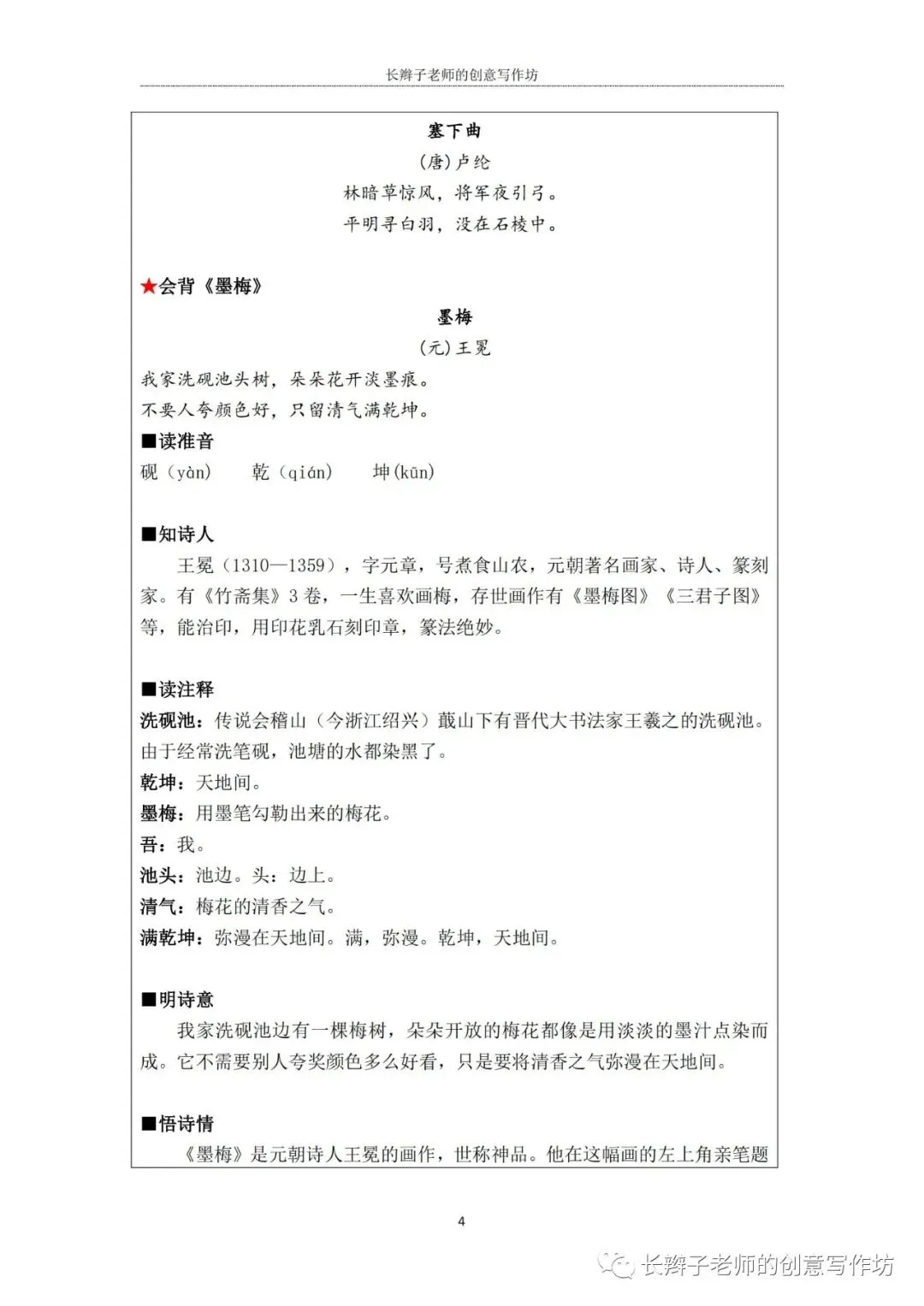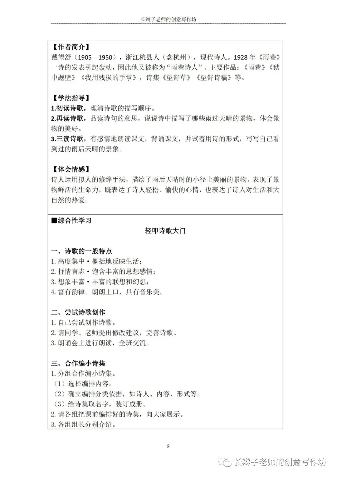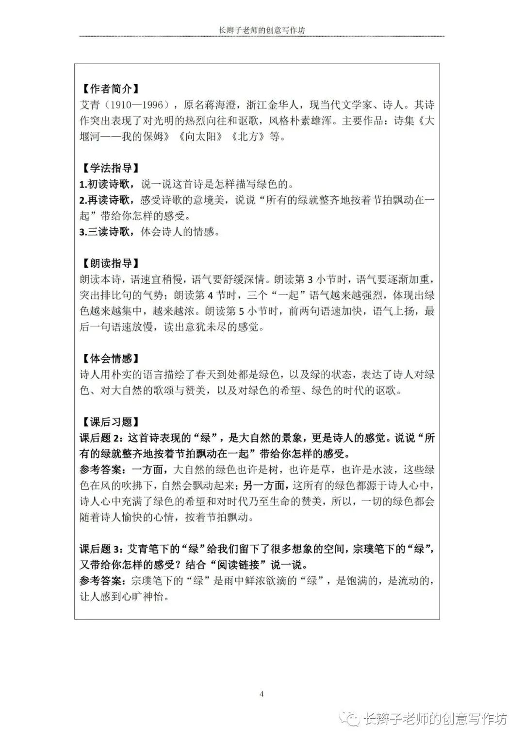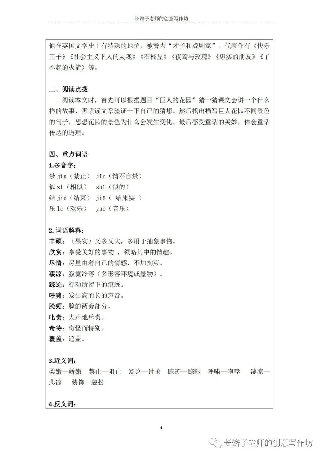 若需要(“四下1-8基础知识汇总表”),请关注微信公众号“长辫子老师的创意写作坊”,在首页对话框写下——四下知识点,便会自动弹出提取链接。
