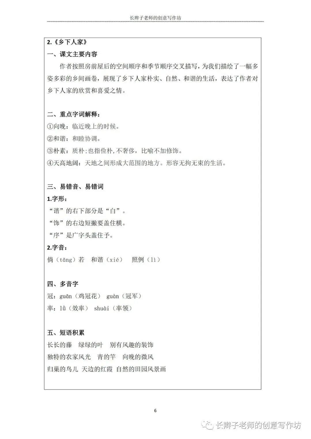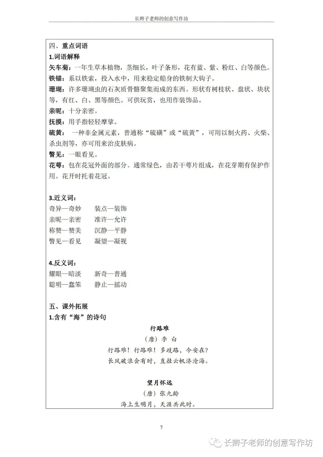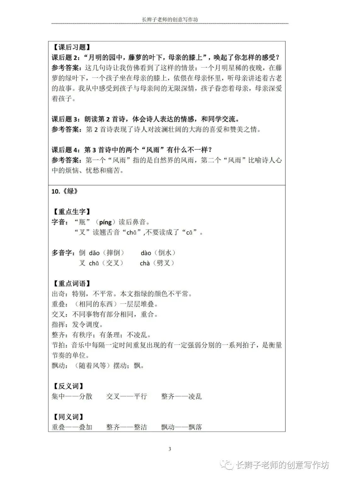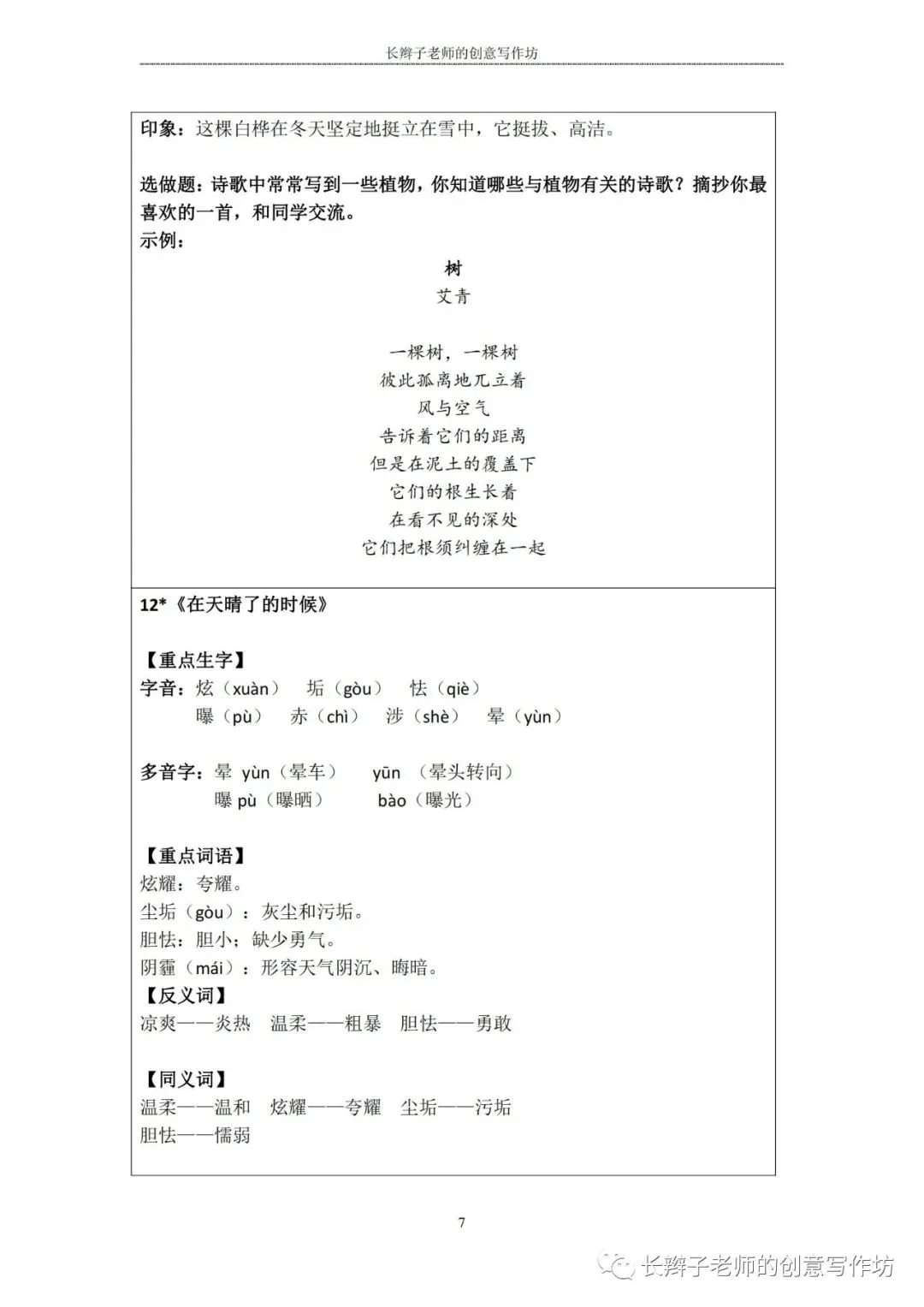 特别说明:这些内容皆为原创,长辫子老师分享的是word版本,在使用前,请认真核对统编教材,自主修改、完善!