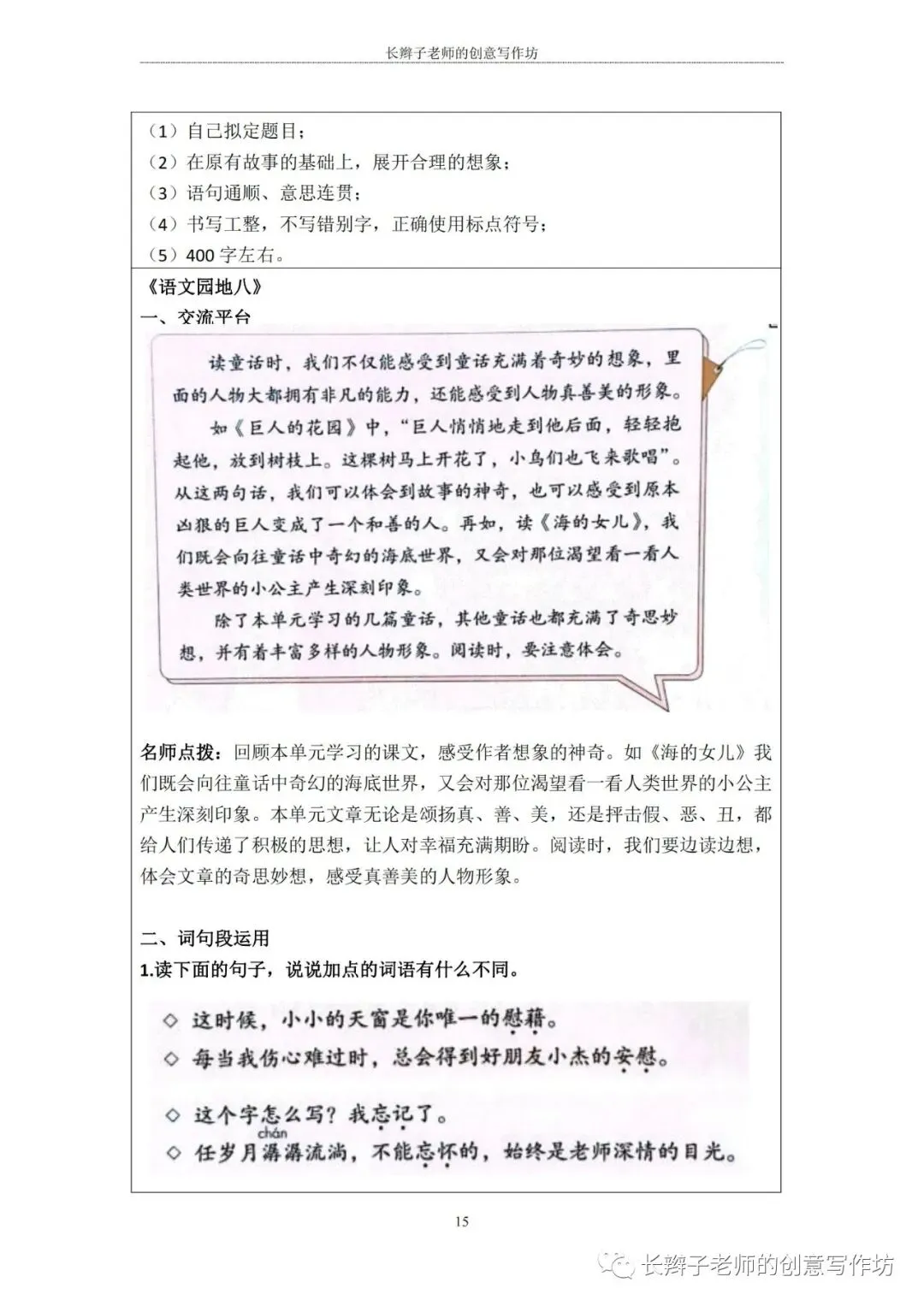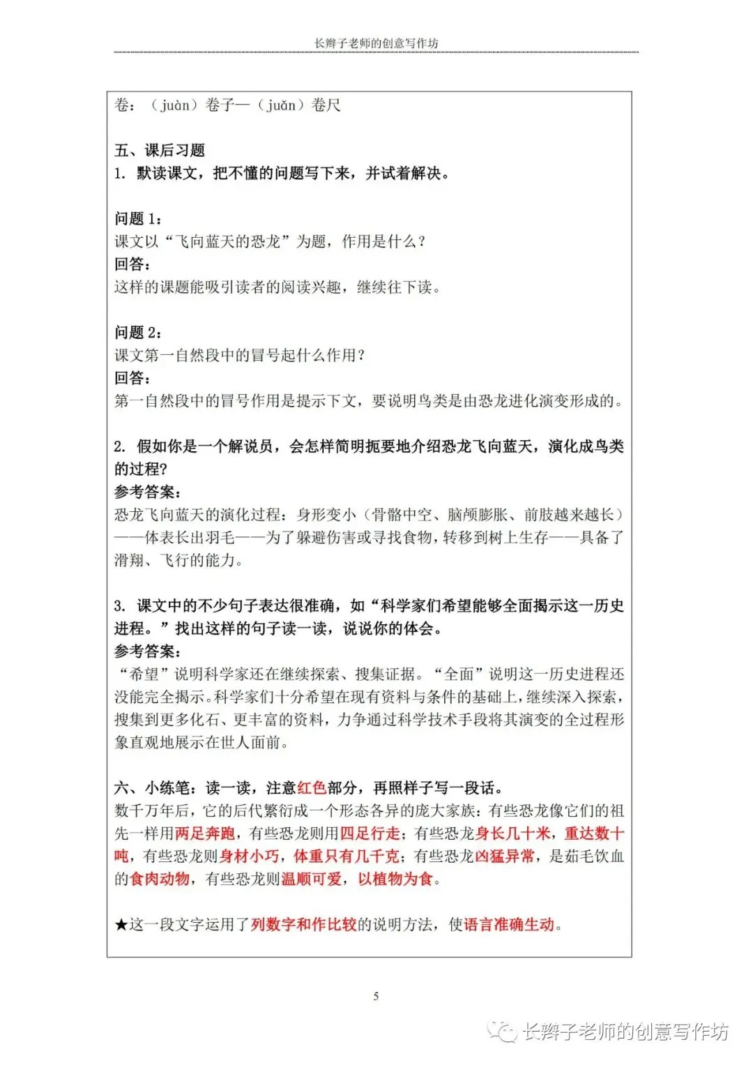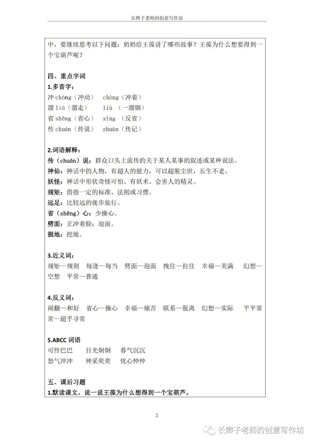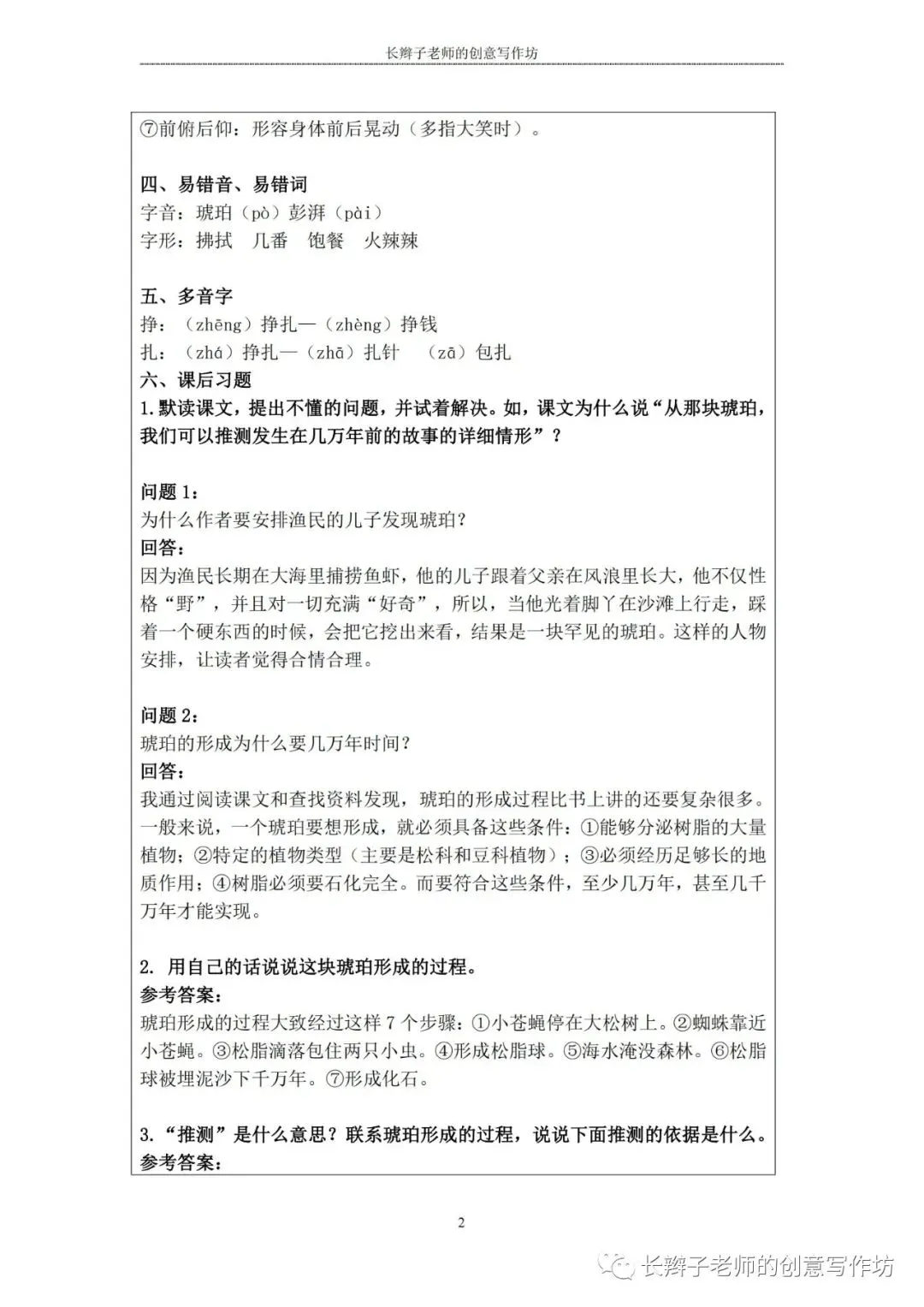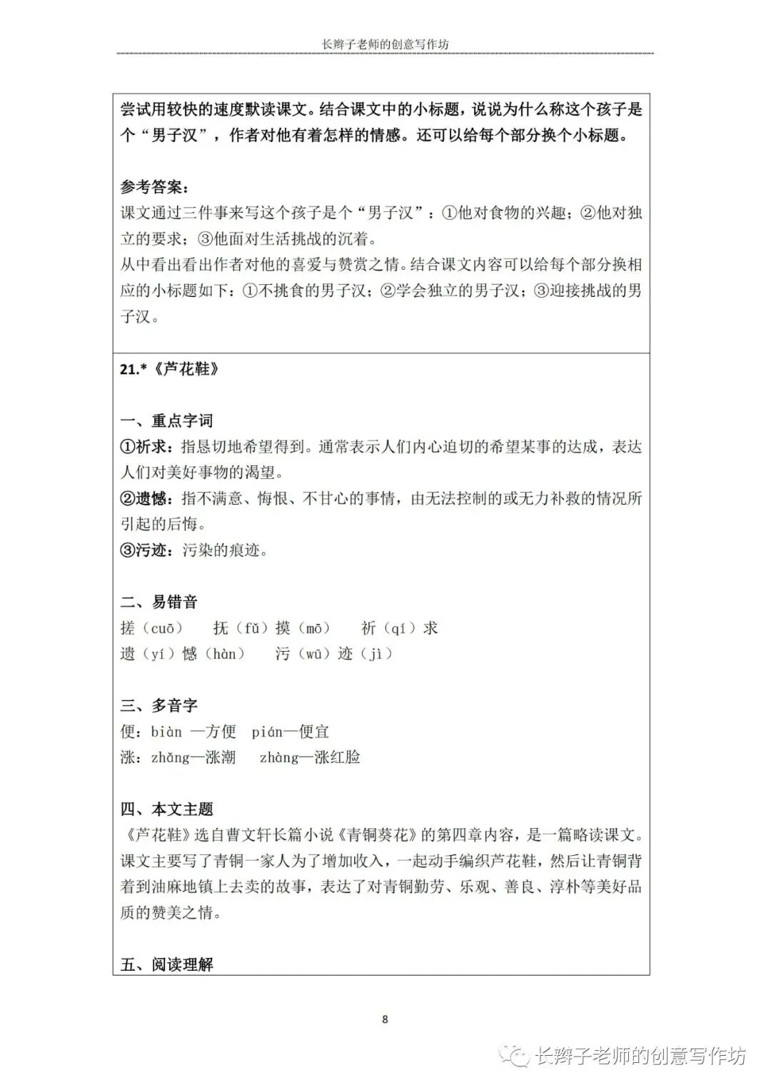 特别说明:这些内容皆为原创,长辫子老师分享的是word版本,在使用前,请认真核对统编教材,自主修改、完善!
