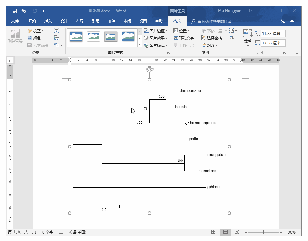 所以,如果进化树的样式比较简单,实现在word中进行编辑很容易。在插入到word之前,你也可以用PPT对进化树进行编辑美化。