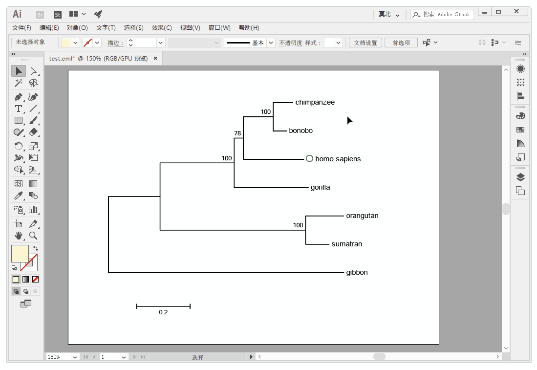需要注意的是Ai不支持输出emf格式的图,但你可以存储为svg格式的图。对于svg格式的图,常用的一些进化树美化工具都支持输出,比如iTol、Figtree等。Word和PPT都可以打开svg格式的图片,但不能像编辑emf格式那样直接编辑。