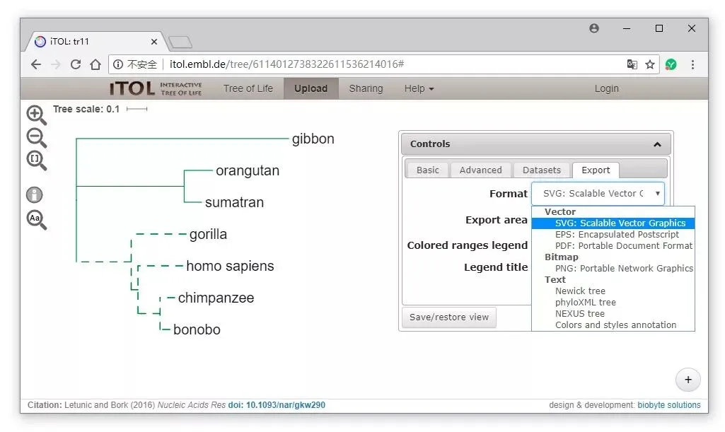 Evolview 不支持导出svg图片,但可以导出PDF格式。当然用Ai可以轻松将PDF转成svg格式。