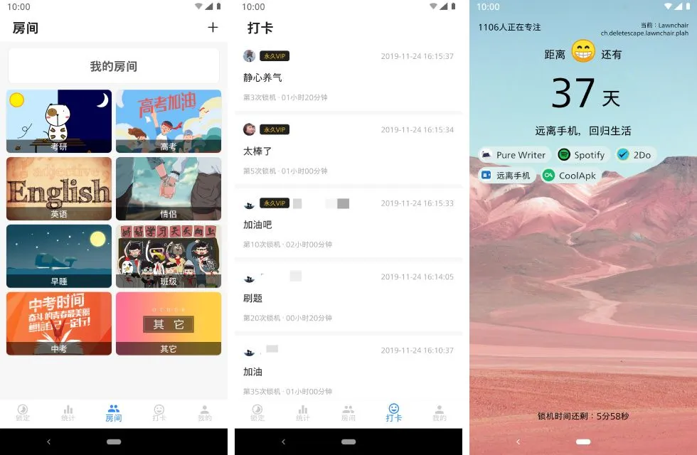 你可以在 Play Store 或酷安等应用商店免费下载远离手机,VIP 用户可以解锁统计功能,得知详尽的应用使用时间统计和手机使用时间统计,并拥有更多白名单及番茄数量等。