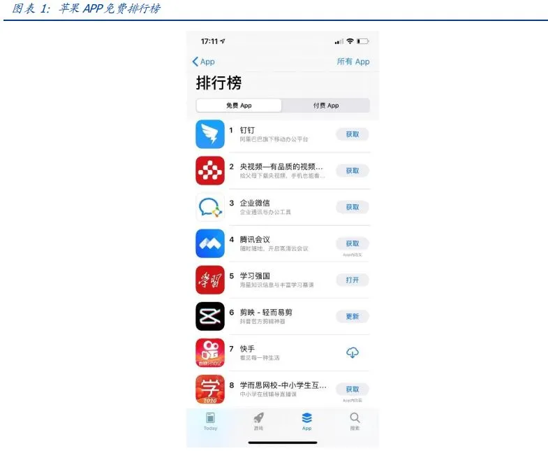 有分析认为钉钉是一个办公类软件,针对企业用户,要比针对普通用户的个人类软件受众和推进速度更少一些,能够跃居下载排行榜第一名,可见受众对在线办公和教育的需求之迫切。
