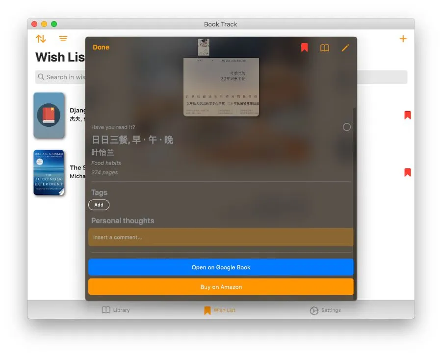 对于爱书的人而言,拥有一个个人图书馆或许是其毕生最大的梦想,书海浩荡能够沉浸其中汲取知识的养分是再好不过的事儿了。但从现实的角度出发,能够拥有一个完整的个人书籍数据库就已经是令人满足的一件事了。相比其他的书籍在线数据库,BookTack 更适合统计和标注自己已经拥有的书和想要阅读的书,你可以将你读过的书和希望阅读的书添加进这个个人数据库中,方便自己个人进行检索。BookTack 提供了两种列表来管理你添加的书籍:图书馆(资料库)和收藏夹,说得通俗一点就是一个是你拥有的收藏的书,一个是你想要读的书。而你可以用两种方法将书籍添加到列表中:通过在线搜索书名或者 ISBN 书号进行搜索,或者是手动输入说明添加等等。不过在我的实验中中文类书籍的检索效果并不好,尤其是直接通过 ISBN 书号搜索时往往只能会出现书码和内容不同的情况。而直接使用名称进行搜索情况则稍好一些。 你可以通过给添加进来的每一本书加上 tag 来方便进行管理,当添加的书目增多的时候可以通过备注快速搜索,每一本添加进来的书都可以编辑评论,修改书籍信息等等。对于放在收藏夹的书还可以直接点击跳转到亚马逊购买页面中。BookTack 支持通过 iCloud 同步数据库,或者将书库信息导出为 PDF 和 CSV 文件,目前 BookTack 已经上架 Mac App Store 以及 App Store,售价均为 12 元,如果你和笔者我一样有图书整理的习惯不妨一试。关注少数派,在后台回复「App」即可获得下载链接。📢 App 速报
