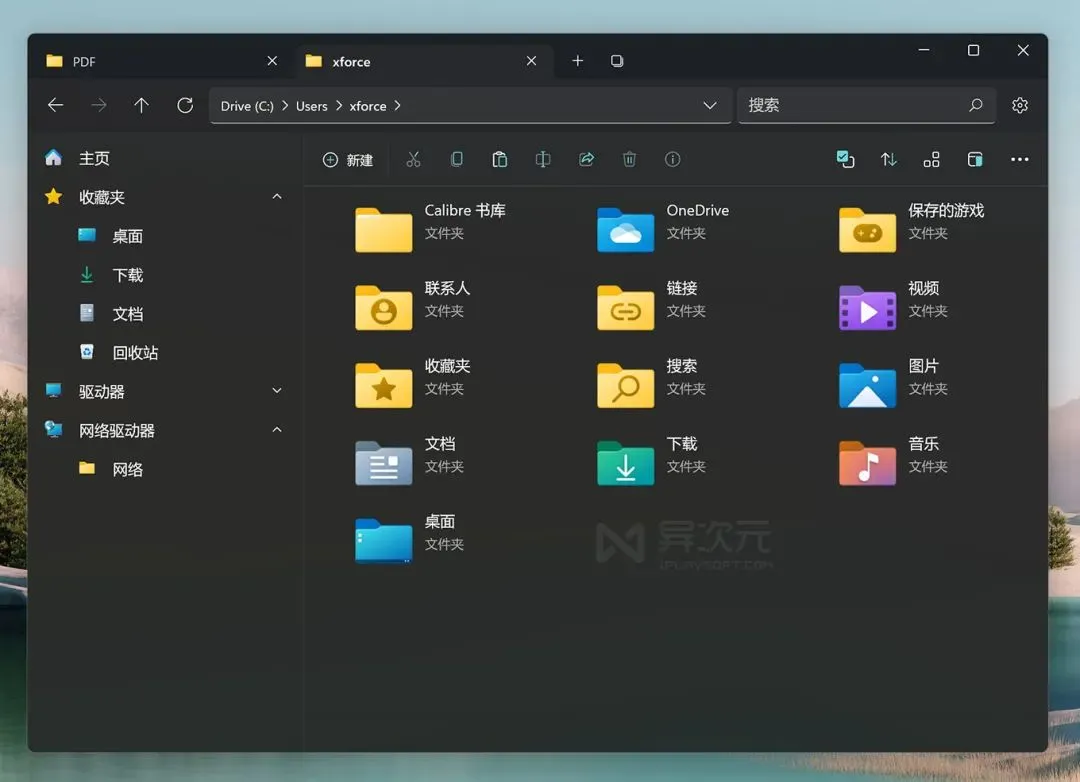 尽管第一眼看过去,Files 应用跟 Windows 11 自带的文件管理器区别不大,但其实在很多细节的视觉设计上得还是更细腻更优雅。比如你可以设置主题颜色;比如文件夹、磁盘等都加上圆角的背景效果,从视觉上能更轻易地跟文件区分开来,可以提高分拣文件的效率。