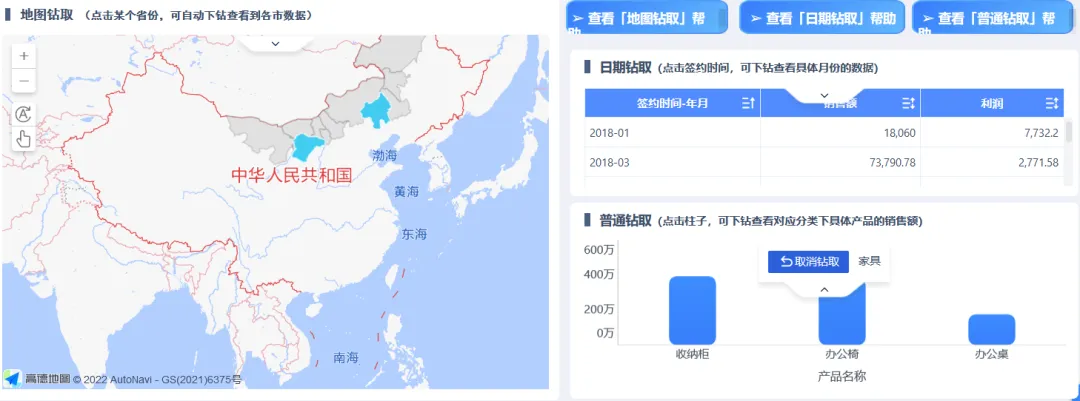 - 自助式深度分析能力:业务人员能自主、灵活地数据分析,通过简单的拖拽操作,就能完成复杂的数据关联、指标计算(如DEF函数)、以及制作包含联动、钻取、跳转的交互式仪表板。