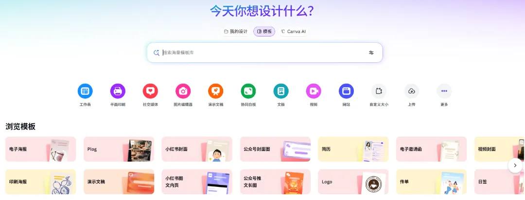 - 海量专业模板:从社交媒体封面、公众号配图、演示文稿、海报到信息图,几乎任何能想到的设计场景,它都有大量高质量的模板。