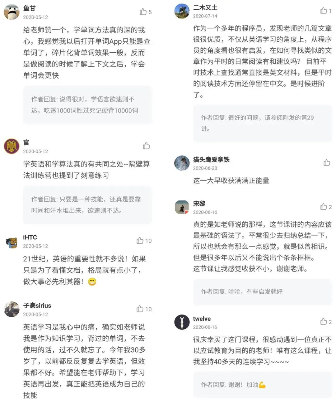 课程上线不久,已经积累了不少好评,顺手截了几个供你参考。