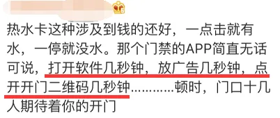 打热水原本插卡即用,现在要打开手机蓝牙、扫码、加载、预扣费,然后才能用,时不时机器抽风了还会被烫到;