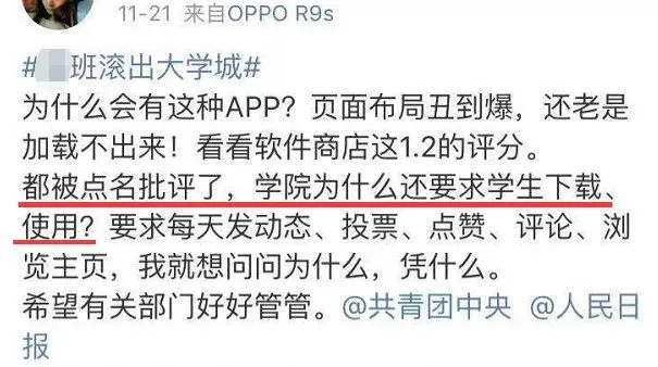 甚至连@人民日报都曾对某个全国学生都吐槽的APP点名批名。可结果呢?