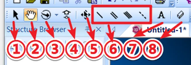 Chem 3D的主工具栏中的左下有一排【Building】建模工具,Building工具栏的图标组成如下图所示: