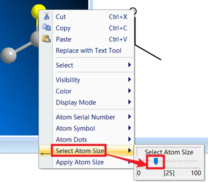 ⑧Select Atom Size和Apply Atom Size:更改特定原子的尺寸大小和决定是否显示该原子。