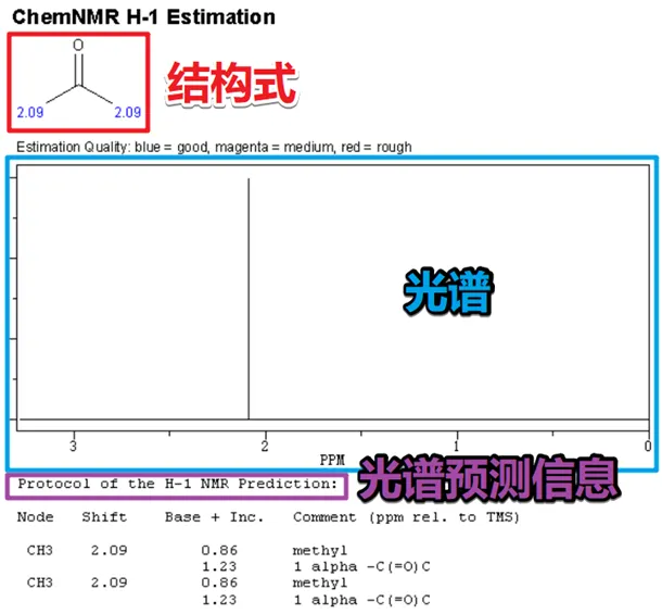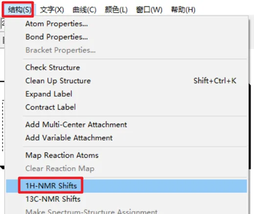 (2)在菜单栏的【结构】一栏中选中【1H-NMR光谱】或【13C-NMR光谱】,即可生成相应的结果。