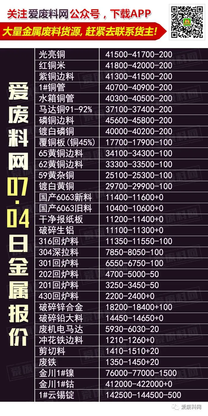 7.4最新金属报价-下载爱废料网APP,免费看更多报价,买更多货源,卖更高价格!(全国最快报价)
