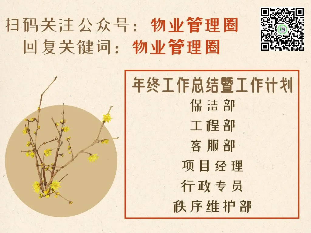 ▶物业客户满意度提升方案+计划表,免费领! ▶中物协发布住宅物业防控新冠肺炎操作指引 ▶新冠肺炎防控物业培训方案、消杀流程指引、台账表 ▶购买了停车位,物业还收取车位管理费, 合理吗? ▶客服部工作总结暨工作计划,赶快收藏~