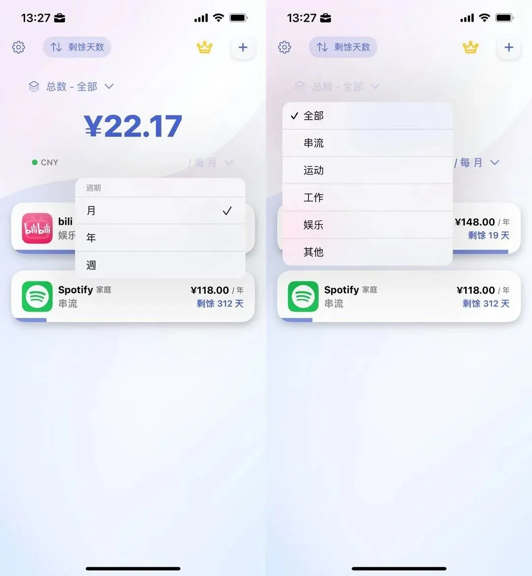 @ROB1N:不知道其他读者是什么习惯,我的生活目前是离不开流媒体的:上班路上听 Spotify 、下班路上听 Pocket Cast 、回到家吃饭看 Netflix ,周末还要在哔哩哔哩固定追番;不想出门运动还要打开 Apple TV 跟着 Finess+ 做一做运动,然后看看 Apple TV+ ;偶尔还会刷一下 YouTube 看一看我喜欢的 YouTuber 的更新……总之我生活的各个环节基本上都被流媒体占领了。但是相信各位也知道,这些流媒体也是需要付费订阅的,只是这些订阅并不是统一时间付费,面对这么多订阅项目,Yosum 作为一款订阅管理软件,帮我解决了当下的重要问题:哪项服务需要付款了?需要付多少钱?应用首页可以添加自己的订阅,同时顶部会计算所有订阅每个月的均价是多少,同时也可以分类查看,只要选中相应的列表就可以。在设置中我们可以选择预设的币种,同时在编辑订阅的时候也可以选择币种,方便在不同币种的续费间来回切换。订阅的编辑也非常简单,可以设置金额、上次付费时间以及付费周期,可以满足大部分的订阅需求。不过有一点不方便在于,订阅周期目前只有「每周」「每月」「每年」,但是很多订阅是按照季度来的,所以希望可以在后续的更新中加上「每季」这一选项。目前 Yosum 提供年度 Premium 订阅,订阅价格 ¥58 ,Premium 订阅支持无限制新增订阅项目,还可以管理其他家庭成员的订阅等等,大家可以在 App Store 下载体验。▍Focus Go:轻量又实用的图库工具