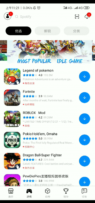像精灵宝可梦、狂野飙车、PUBG 这种全球性游戏它都有,重要的是这里都可以免费下载。