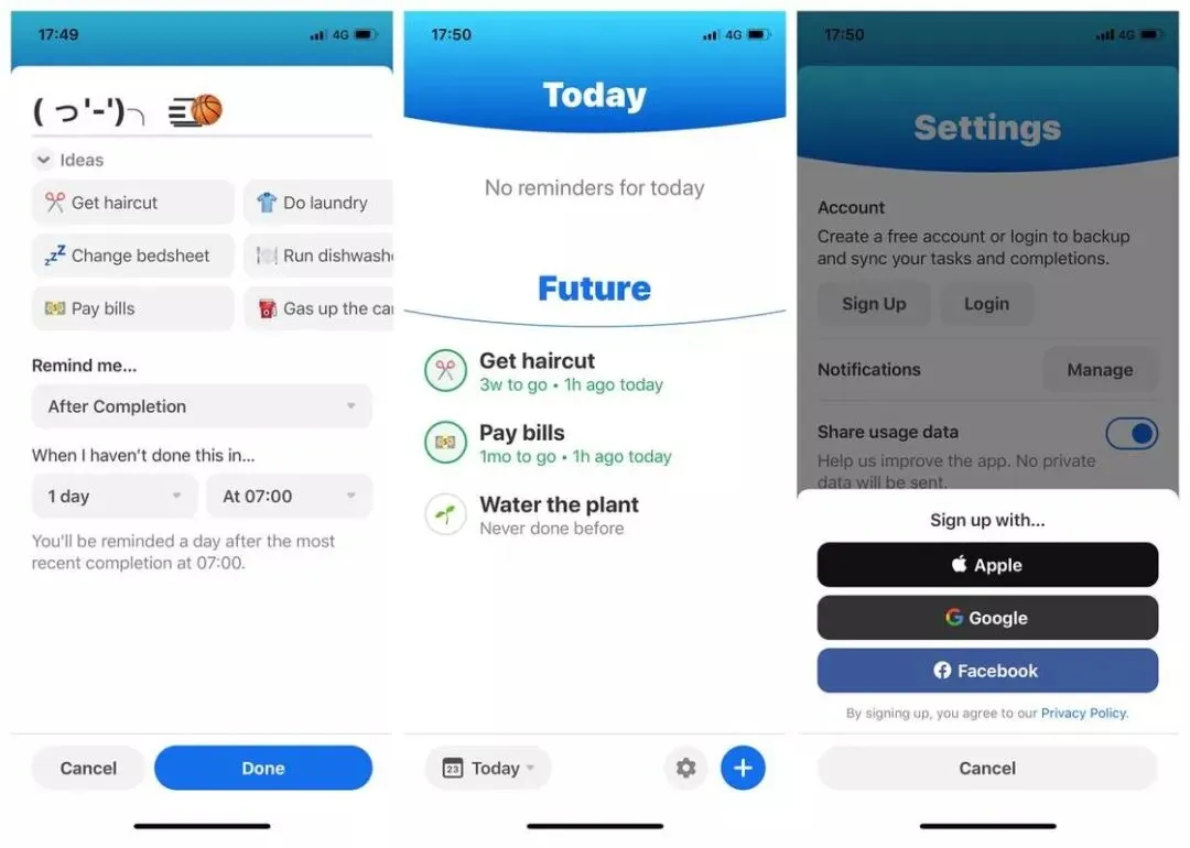 人一旦忙碌起来,很多日常事务容易忘记,尤其是那些经常要做的事,比如浇水、遛狗、打卡、发邮件等,像我有时候甚至不记得自己是不是已经做过某件事情了。在这种「懵圈」的时候,你就需要找一款工具帮你记住这些事,最近刚上架的 Sometime 看起来就是一个不错的选择。应用内置了一些日常任务,例如理发、付账单、洗衣等等,点击即可直接调用。当然,你也可以在顶部输入框中自定义任务内容;输入框支持 Emoji 表情,你可以利用这点更好地对任务进行标识。接下来就是选择提醒模式了,Sometime 的设置非常灵活,你可以选择在每日或每周固定时间点进行提醒,也可以自定义在每次完成任务后的一定时间后再次提醒,从而满足周期性任务的需求,周期选项支持从「天」到「年」之间的常见时间单位,足够日常的使用需求了。在应用主界面,你可以清楚地了解目前需要完成的任务、以及下一次提醒的时间。如果有任务刚刚完成,长按任务名就可以轻松进行标记。如果你想删除任务或是调整提醒时间,左滑任务就可以进行进一步操作。Sometime 支持免费的云同步功能,利用 Sign in with Apple 注册账号进行同步还是很方便的。可惜的是,Sometime 所有任务都以「今日」为基础,你无法直接设置某一指定日期的任务;所以,Sometime 还是要搭配一款日程应用,才能更好地发挥它的作用。在这一点上,Due 之类的应用于我而言实用性更强一些。 你可以在 App Store 下载 Sometime,应用免费无内购。