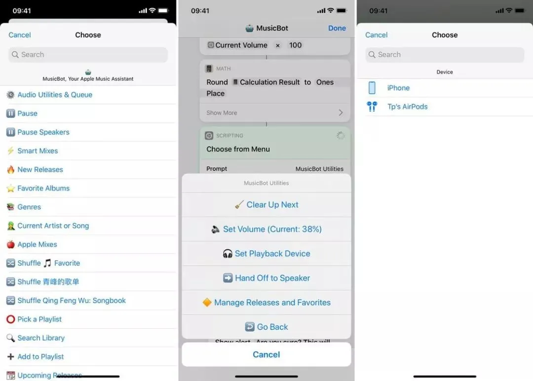 MusicBot 不是一款严格意义上的 App,而是来自于国外应用推荐媒体 MacStories 的一个快捷指令,需要基于 Toolbox Pro 及订阅 Apple Music 后进行使用,用户需要订阅 Apple Music 并安装 Toolbox Pro 和快捷指令 App 才能正常使用。借助 MusicBot,我们可以用更少的步骤来实现 Apple Music 的各项操作。在 Apple Music 中,如果你想随机播放一个歌单的操作并不算轻松:你首先要进入「播放列表」、随后选择歌单、再点击「随机播放」;但在 MusicBot 中,你只需要点击「随机播放 XX 列表」就可以了。这是因为在首次启动 MusicBot 时,它会要求你填入三个常听歌单,在使用的时候就减少了繁琐的操作,直接一步完成随机播放。除此之外,MusicBot 还支持一键播放白噪音、Apple Mixes 歌单等功能;不但减少了在应用中反复点击的步骤,还省去了搜索歌单的麻烦。MusicBot 还支持对音频播放进行设置,比如调整播放顺序、更改 AirPlay 播放设备等。令我比较意外的是,用户甚至还可以从 Apple Music 分享音乐、专辑到 MusicBot,并且进行新歌发售追踪等操作。不过该功能目前仅可在 MusicBot Pro 中使用,而 Pro 版需要加入 MacStories Club 才能获取。对于普通用户而言,MusicBot 免费版的功能也完全称得上是 Apple Music「全能助手」了。你可以免费获取 MusicBot,需要搭配快捷指令、Toolbox Pro 及 Apple Music 使用。