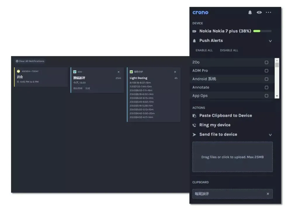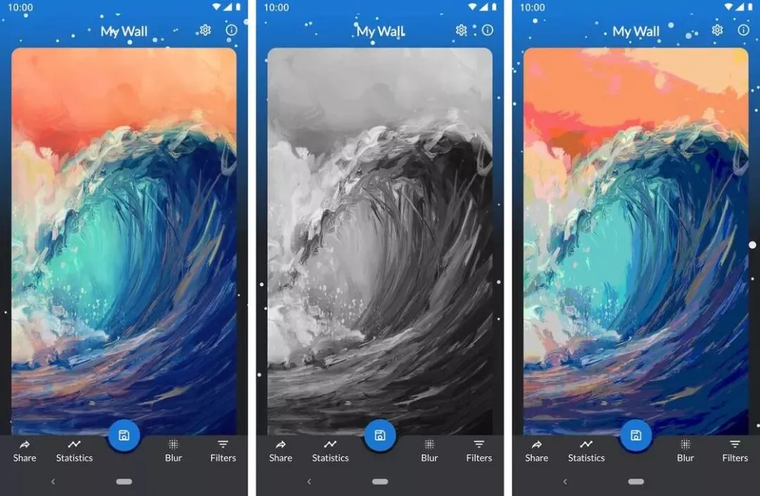 挑选壁纸是一件长久以来困扰许多人的事情,在少数派搜索栏输入「壁纸」这一关键词,得到的结果多到令人咂舌,这无疑说明挑选合适的壁纸对于颜值党而言是头等大事。而当我们好不容易在茫茫大海中挑选出了一张还算称心满意的壁纸,喜滋滋地应用到桌面后,却发现存在着壁纸颜色和图标颜色「打架」、桌面文字识别不清等问题,这种状况无疑是令人崩溃的。如果不想舍弃已经挑选出来的壁纸,为壁纸增加模糊效果或许是一个可行的解决办法,类似的工具少数派之前也有过介绍「克拉壁纸」,而今天介绍的这款 My Wall 除了能够为壁纸提供多档模糊效果以外,还围绕壁纸带来了一些实用小功能。首先是壁纸数据分析功能。My Wall 能够为用户生成当前壁纸的颜色数据,并给出主要颜色的色值;此外,用户还可以将壁纸的颜色数据导出为 .csv 格式的文件,这对于喜欢设计的朋友而言或许是个不错的功能。其次,My Wall 能为壁纸增加不同的滤镜效果。应用内置了两种滤镜效果,即「灰度滤镜」和「印刷效果滤镜」。其中,灰度滤镜会将壁纸一键设为黑白效果,能够突出屏幕图标或文字,但美观程度就大打折扣,具体使用偏好因人而异;印刷效果滤镜则会使得壁纸呈现出一种类似于报纸等印刷品的质感,适用于纹理类壁纸。另外,My Wall 还能帮你便捷地分享壁纸。在为壁纸套用模糊或滤镜效果后,用户可以通过内置的分享按钮直接将设置好的壁纸作为文件分享出去,省去了从相册应用中进行翻找的步骤。在 My Wall 中,模糊化、滤镜等功能均可以叠加,在主界面任意位置下拉便能恢复壁纸的初始状态,需要提醒的一点是,My Wall 当中的效果只适用于静态壁纸。你可以在 Play Store 中免费下载使用 My Wall。▍Crono:在你的手机和电脑之间架起桥梁