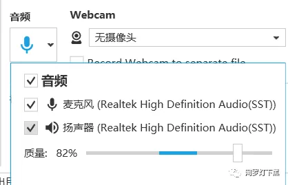音频要注意,它可以录制麦克风和扬声器的声音,这个不难理解吧,简单说就是电脑外部音源和内部音源,可以自行选择。