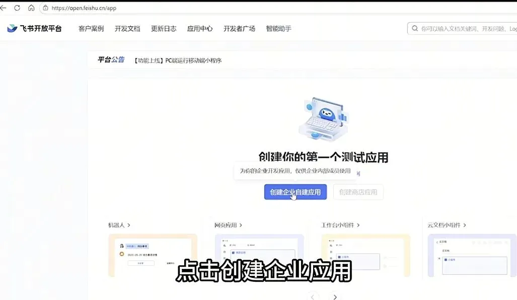 首先浏览器搜索飞书开发平台,点击开发者后台