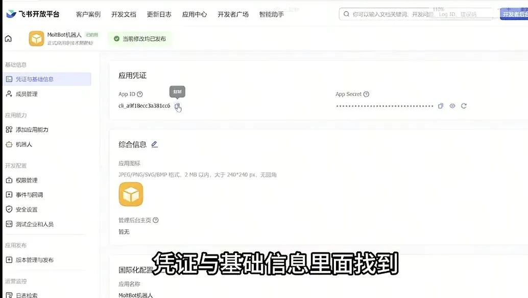 在凭证与基础信息里面可以找到APP ID和 APP Secret