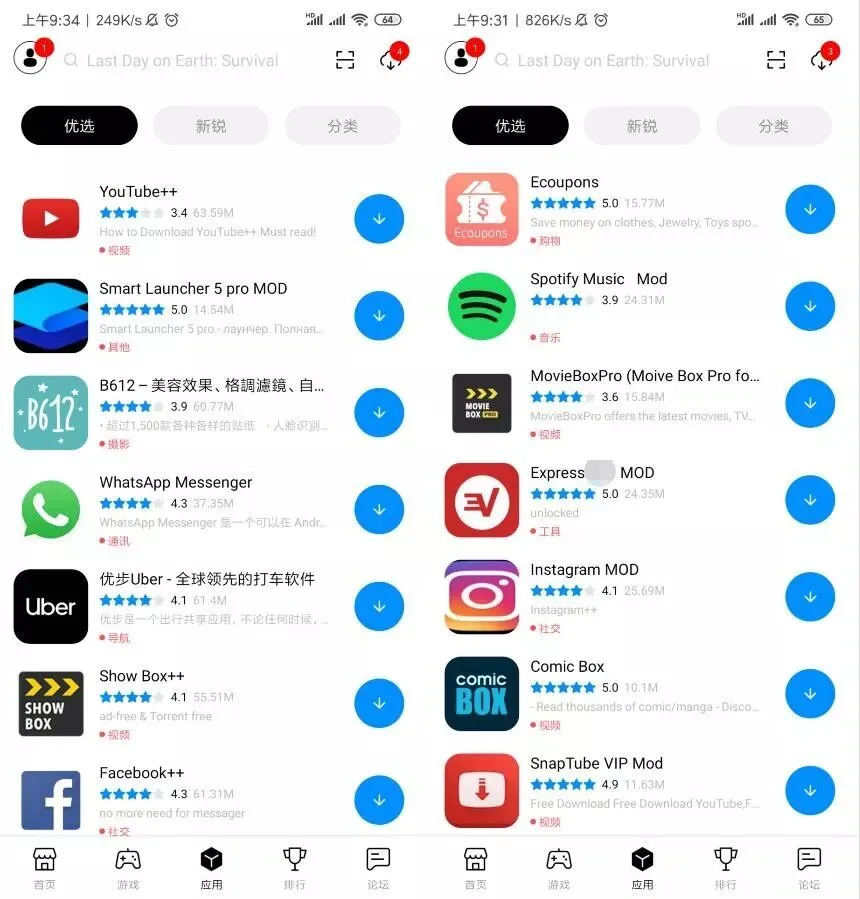 同时也对应用进行了分类,分类涵盖了各个方面,相信应该可以满足需要。