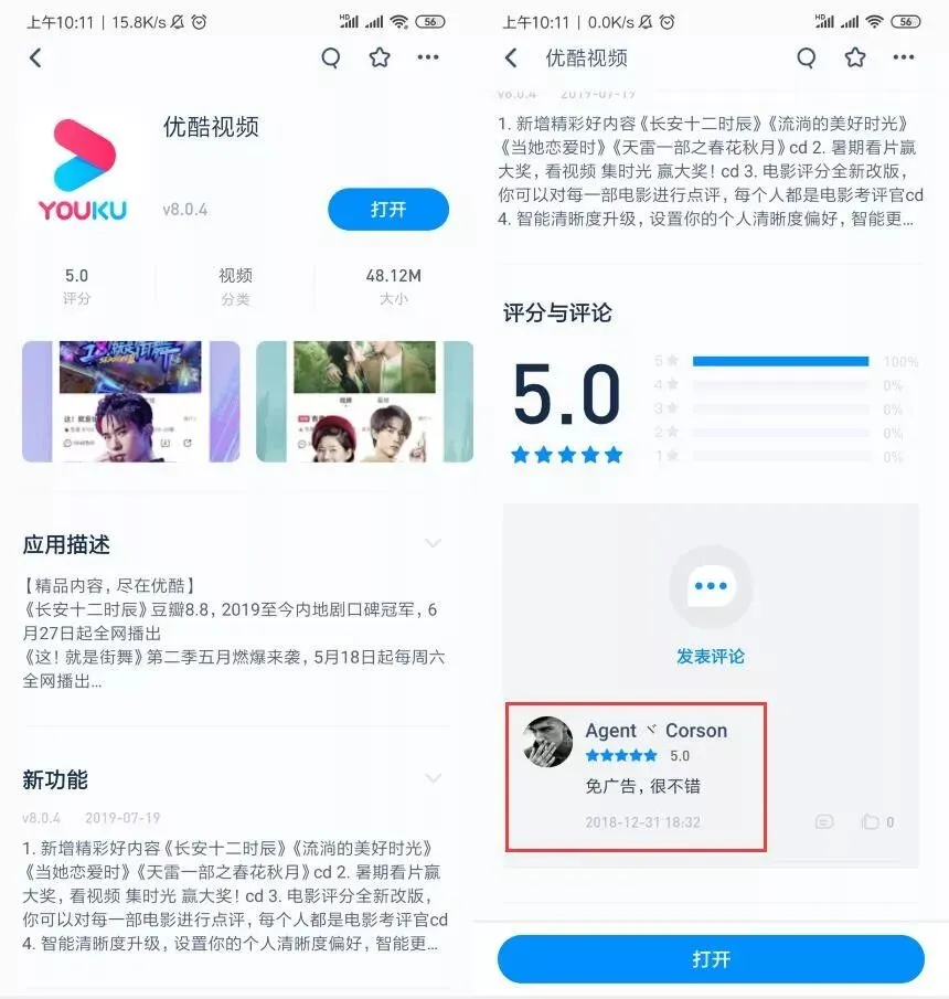 在这上面又下载了爱奇艺视频,同样也没有广告。