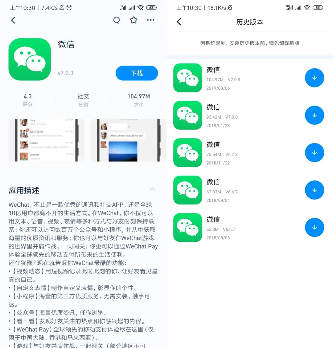 不过好处是可以下载到 App 的历史版本,这也是一大福音之一,之前还有好多小伙伴询问怎么如何降级。
