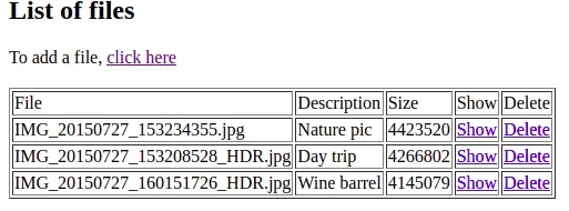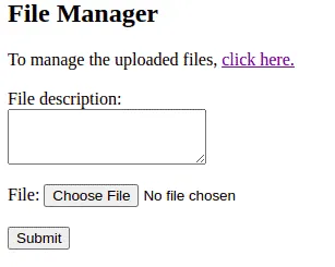 用户可以将文件上传到服务器,在带有查看或下载链接的列表中查看它们,最后,可以删除每个文件。