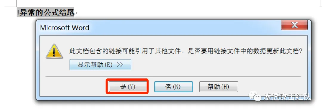 DDE 攻击比较老了,不过在渗透中难免还是会碰到;关于 DDE 攻击的缺点就在于目标必须要点击两次“是”才能够执行 DDE 代码进行攻击,而至于怎样才能让目标心甘情愿的点击,那就靠各位如何包装钓鱼邮件,和如何实施了,一份逼真的钓鱼鱼饵在于你搜集到目标的信息是否准确真实,在此不多解释大家都懂。